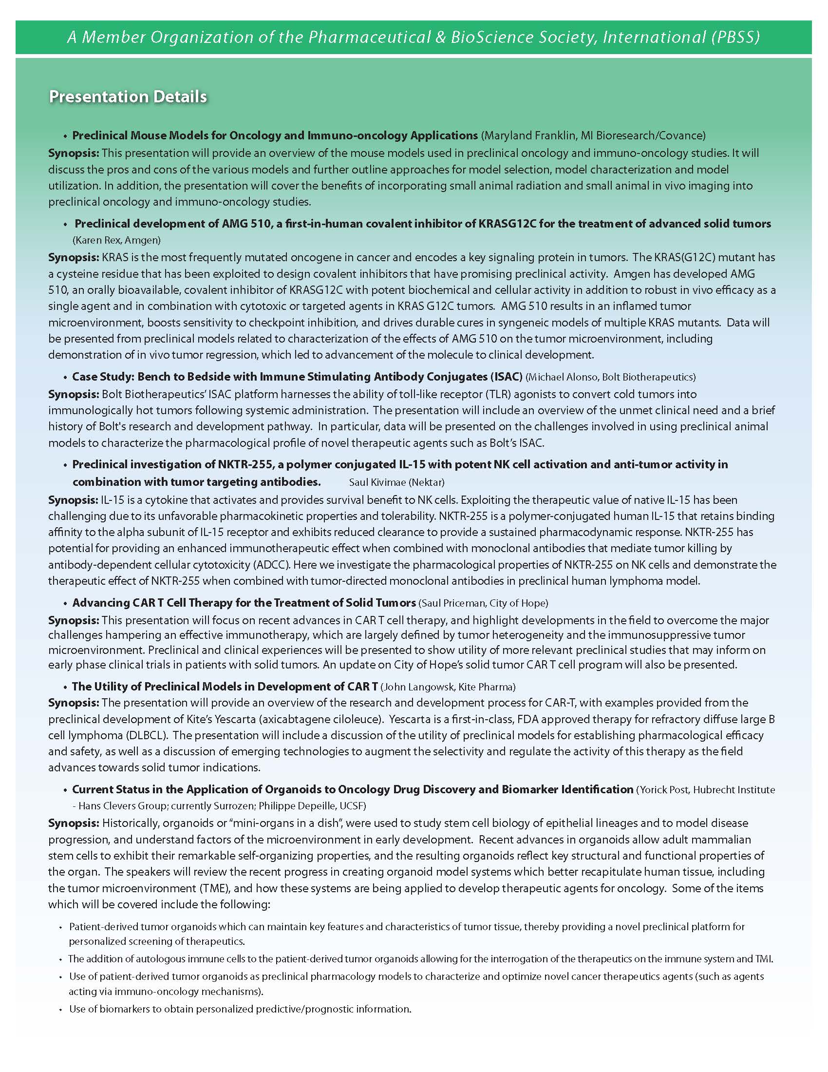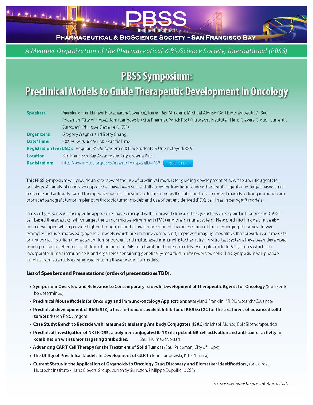 PBSS Symposium: Preclinical Models to Guide Therapeutic Development in Oncology Share EmailXFacebookPinterestLinkedinVkontakte January 22, 2020